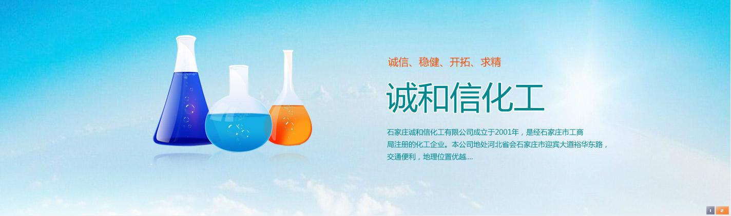 石家莊誠(chéng)和信化工有限公司成立于2001年,是經(jīng)石家莊市工商 局注冊(cè)的化工企業(yè)。本公司地處河 北省會(huì)石家莊市迎賓大道裕華東路 ,交通便利,地理位置優(yōu)越。公司 主要產(chǎn)品....詳細(xì)>>